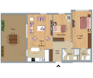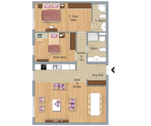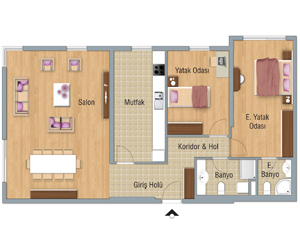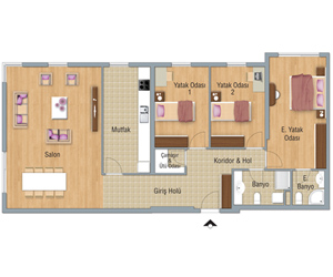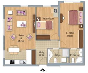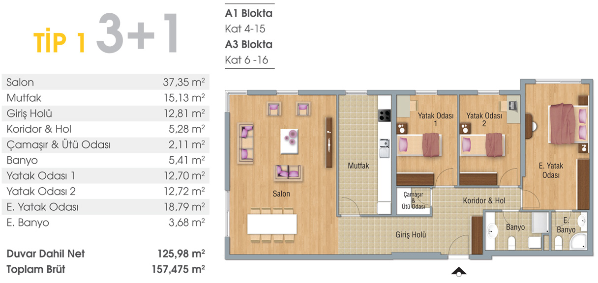 TİP 1 3+1 A1 Blokta Kat 4-15 A3 Blokta Kat 6-16
