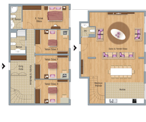 TİP 5 Dublex A1-A2-A3 Bloklarda Alt Kat 29 Üst Kat 30